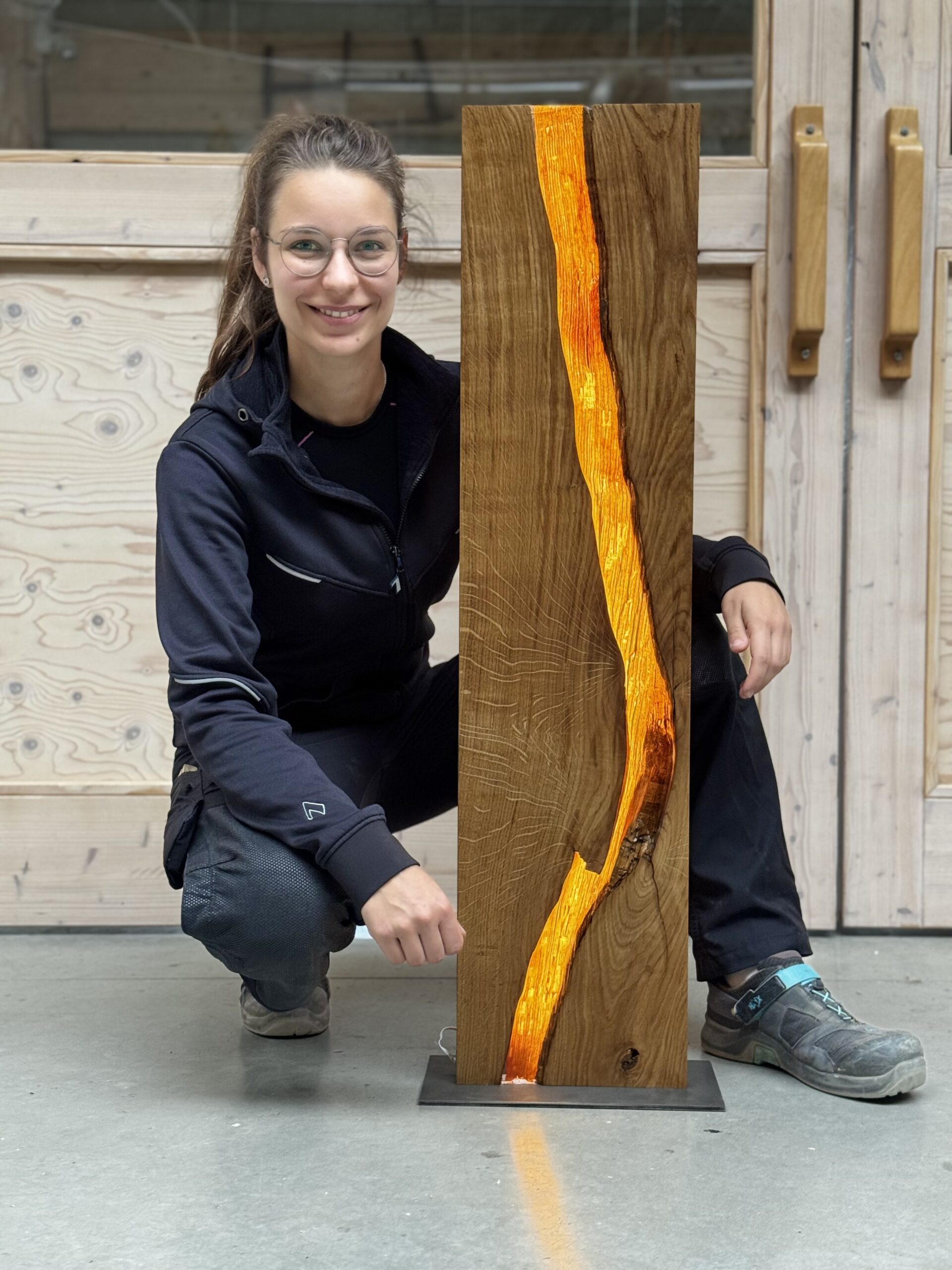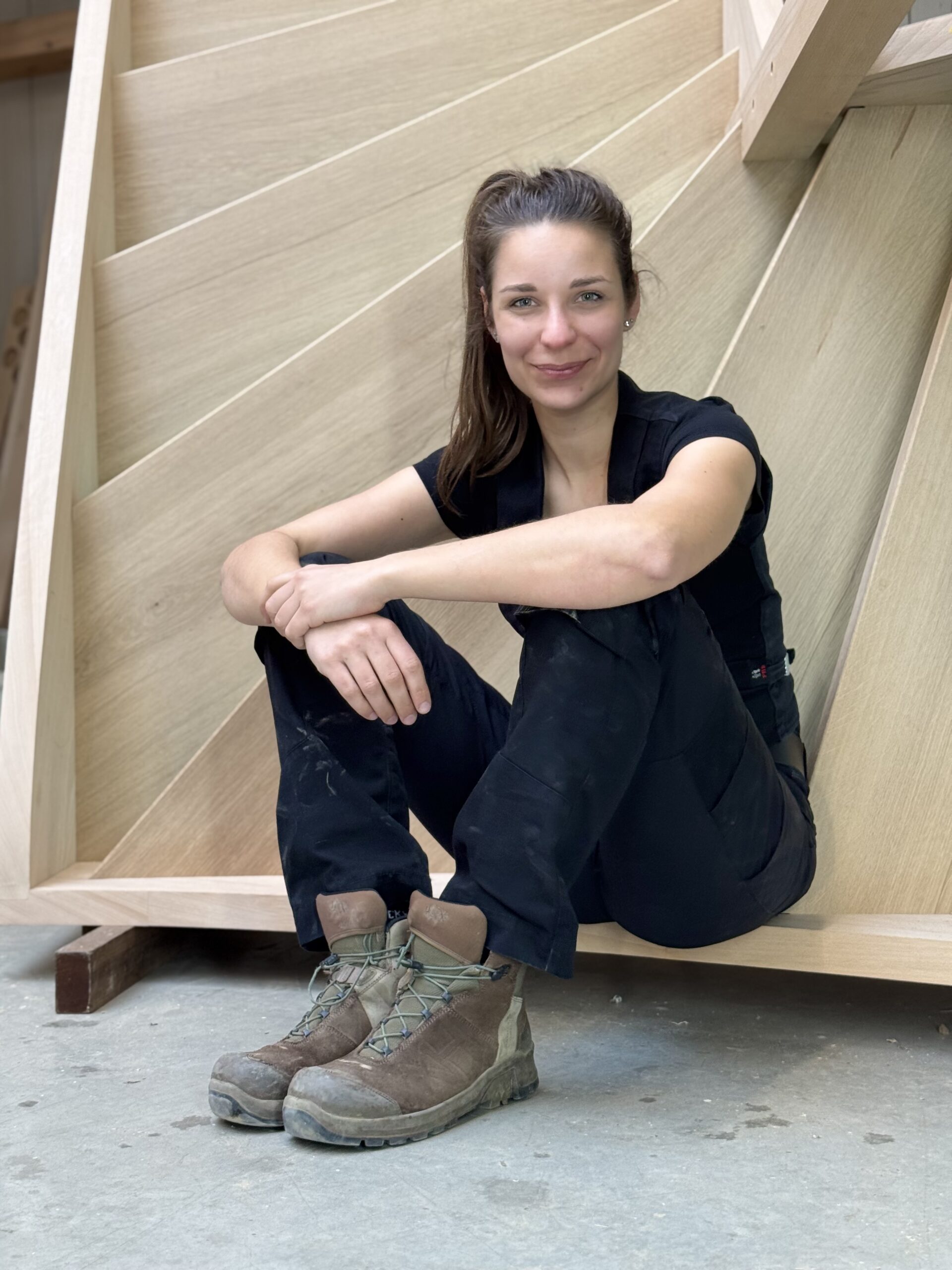 Seit 2020 bin ich angestellte Tischlermeisterin im elterlichen Betrieb. Hierbei bin ich in die Produktion von Massivholztreppen und Einzelanfertigungen im Möbelbau eingebunden.